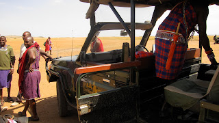 Now after we arrived, I quickly noticed that all the drivers for the vehicles were dressed in what I had come to recognize as Masai warrior clothes. It seemed a little gimmicky, and I still don't know if they do that for legitimate cultural reasons or just for effect, but it made it particularly funny to watch one of them talking on his cell phone as he approached the plane.